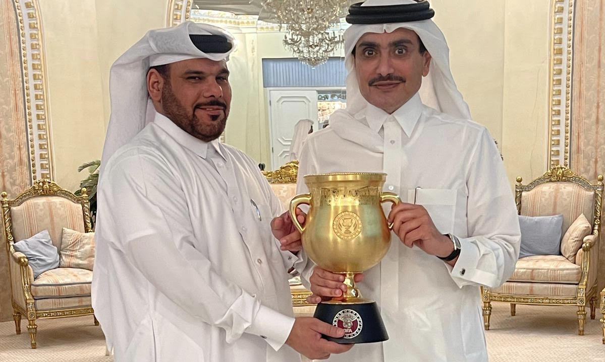 الشيخ سعود بن خالد آل ثاني يهنىء الشحانية بعد التتويج بلقب كأس الدرجة الثانية